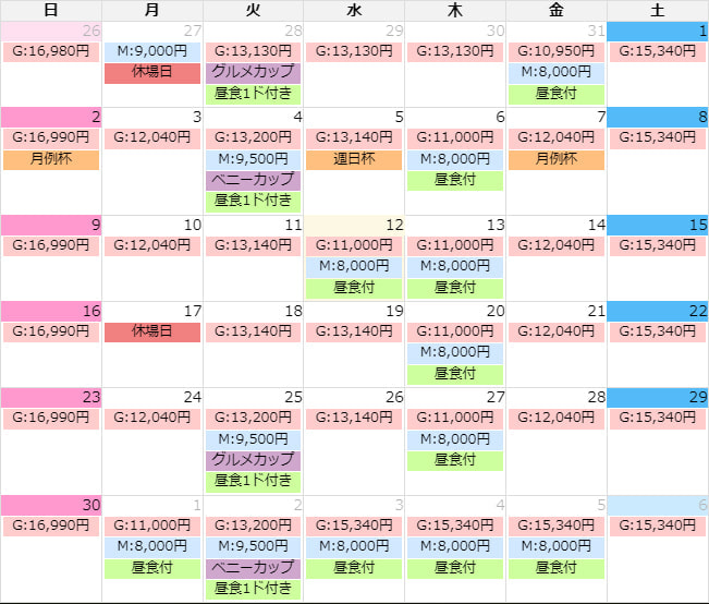 ※料金は税込み・4バック対象表示となっております。